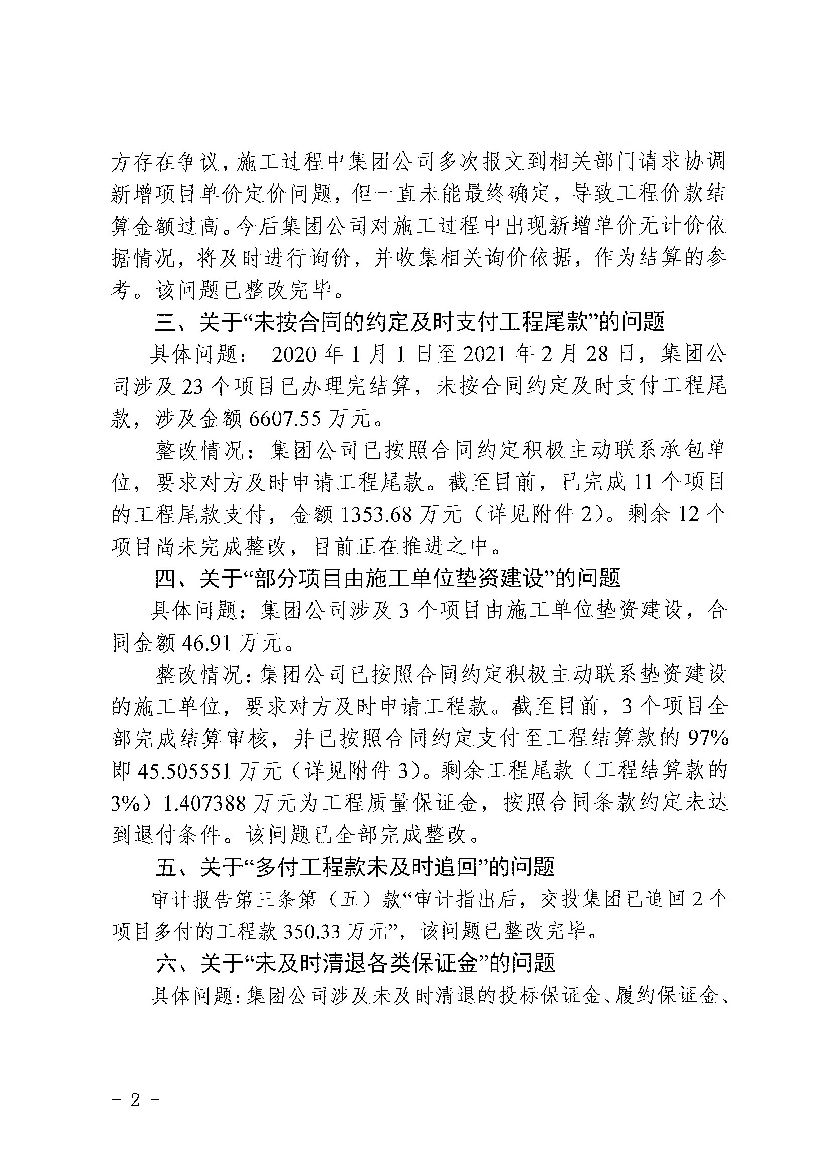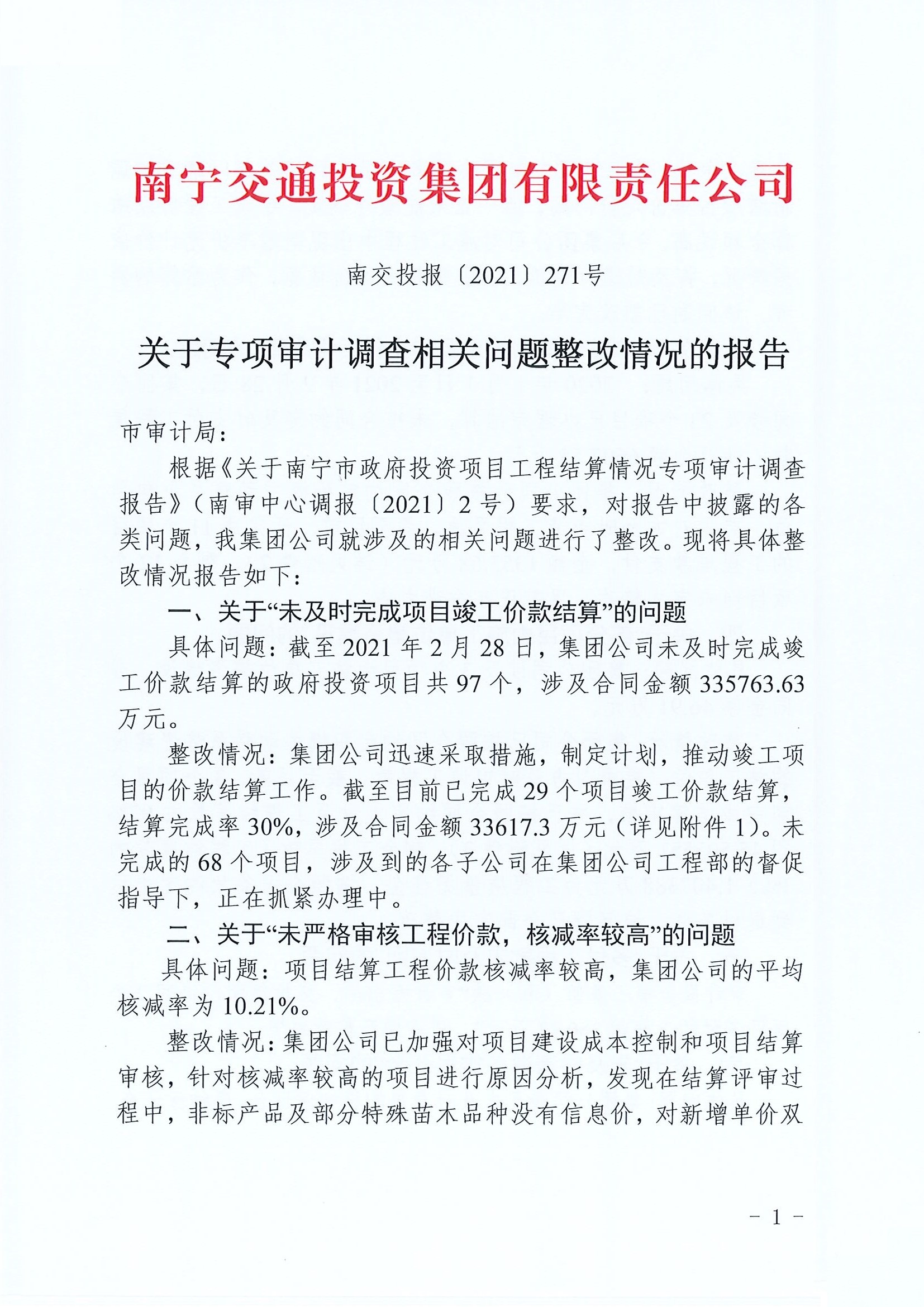 2020年度審計項目發(fā)現(xiàn)問題整改公開-南寧市政府投資項目工程結算情況專項審計調查