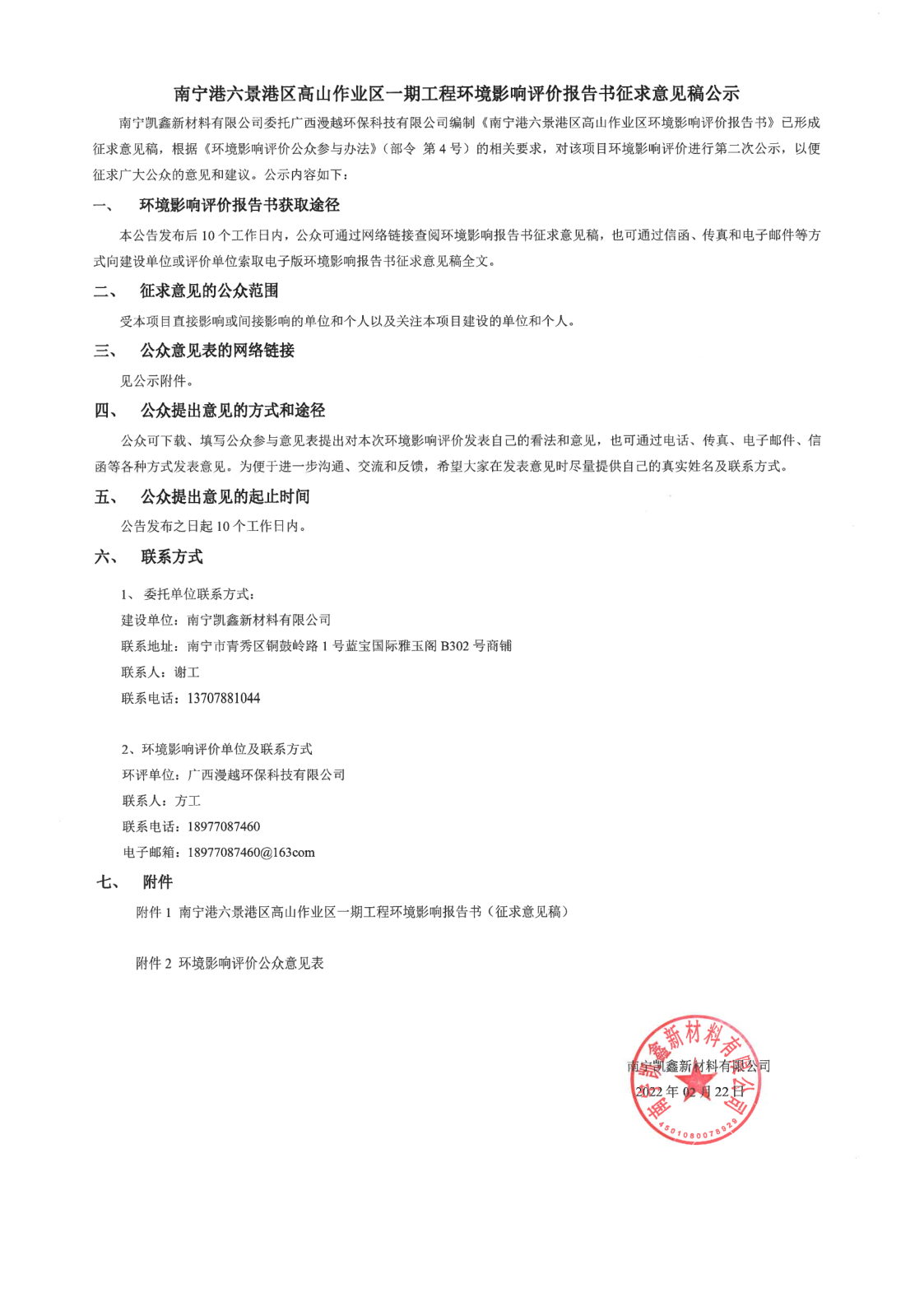 南寧港六景港區(qū)高山作業(yè)區(qū)一期工程環(huán)境影響評價報告書征求意見稿公示