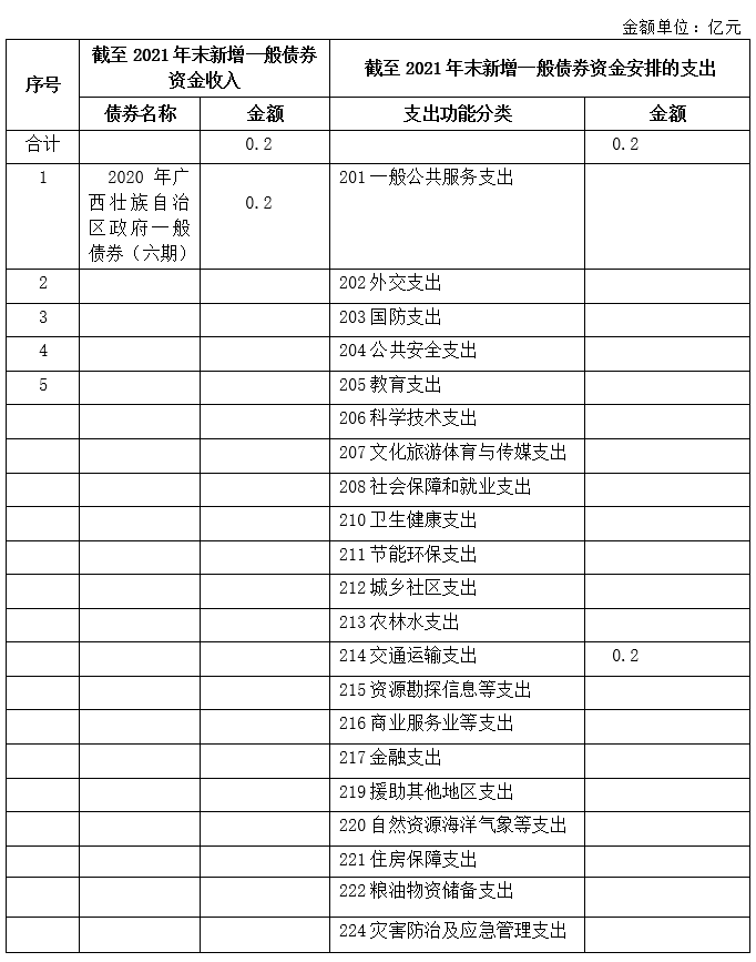 截至2021年末發(fā)行的新增政府一般債券情況表