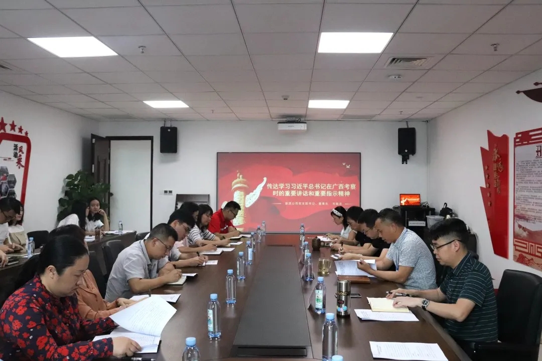 交流研討會(huì)分為“精華解讀”和“分享交研”兩大環(huán)節(jié)。在“精華解讀”環(huán)節(jié)中,韋敏忠董事長(zhǎng)傳達(dá)學(xué)習(xí)了習(xí)近平總書記在廣西考察時(shí)的重要講話和重要指示精神,帶領(lǐng)大家集體觀看黨史教育視頻《革命理想高于天》,從習(xí)近平總書記的指示精神及黨的百年偉大奮斗歷程中汲取繼續(xù)前進(jìn)的智慧和力量。