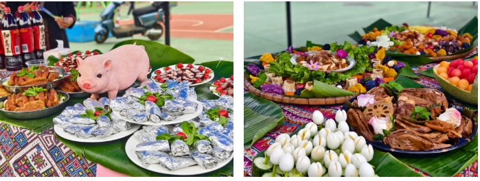 除了以斑斕五彩寓意吉祥如意、五谷豐登的五色糯米飯,廣西“三月三”還有烤香豬、竹筒飯、檸檬鴨、彩蛋、紙包雞、艾葉糍粑等美食。
