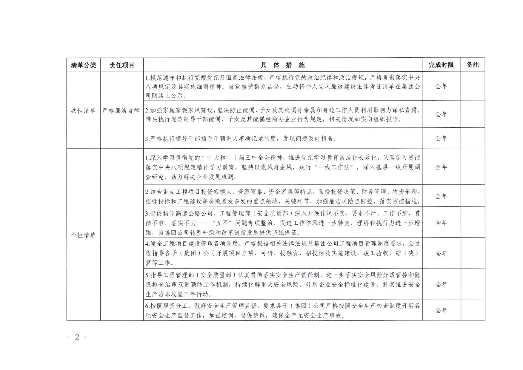 南寧交投集團領(lǐng)導班子其他成員2025年度黨風廉政建設(shè)“一崗雙責”清單(二)