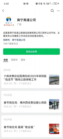 司乘只需關(guān)注“南寧高速公司”微信公眾號(hào),點(diǎn)擊發(fā)消息即可輕松開啟在線咨詢之旅。這種將AI智能客服融入微信公眾號(hào)的方式,充分考慮了司乘人員的使用習(xí)慣,進(jìn)一步拉近了企業(yè)與司乘之間的距離。
