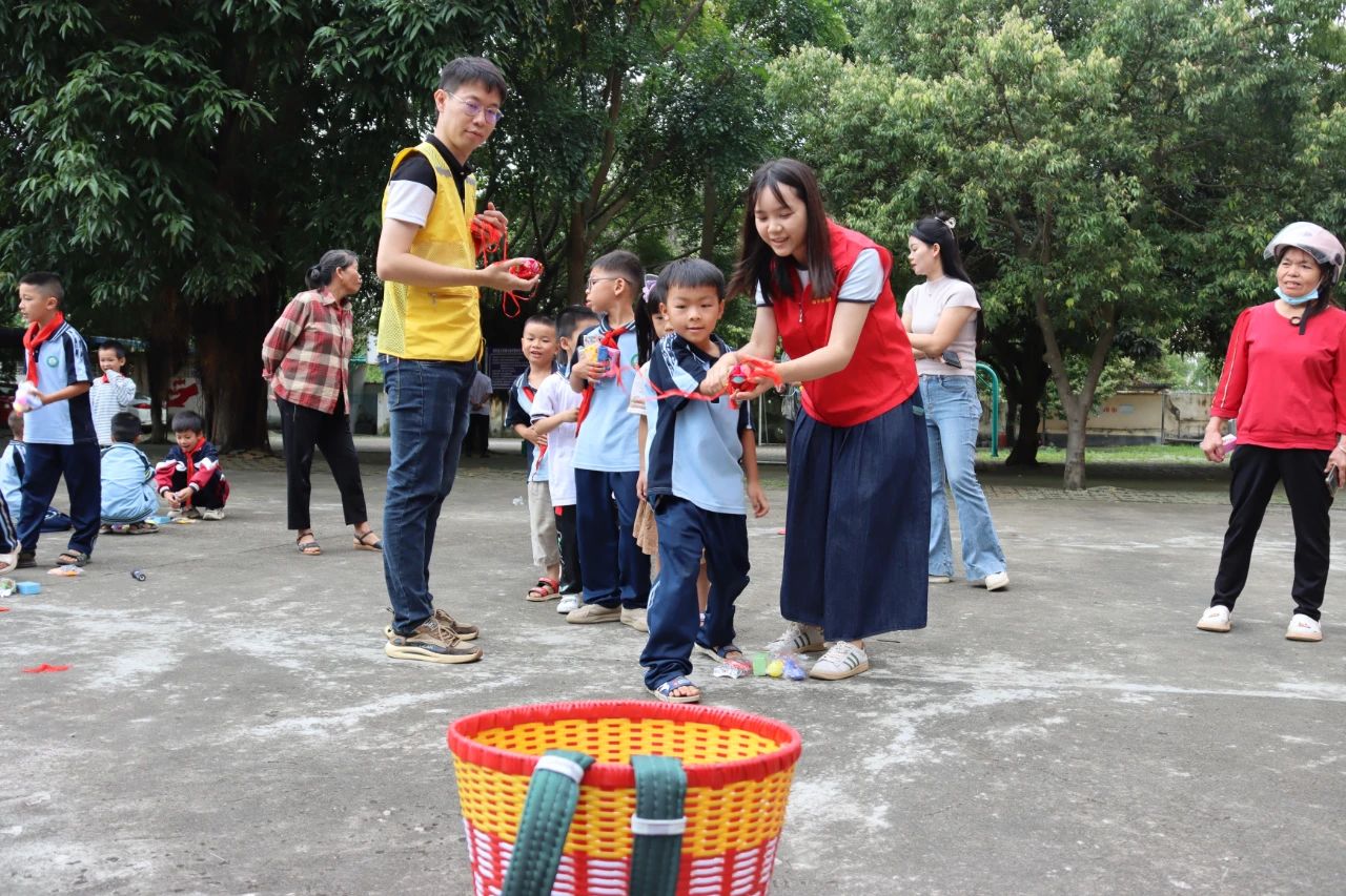 課堂結束后,在志愿者們的帶領下,孩子們來到教室外參與拋繡球、投壺、套圈等民族傳統(tǒng)體育項目。志愿者與孩子們分組協(xié)作、相互配合,完成了一項項挑戰(zhàn),激勵孩子們享受運動的快樂,觀察到、感受到生活中的民族藝術的魅力,豐富了文化生活和情感體驗。
