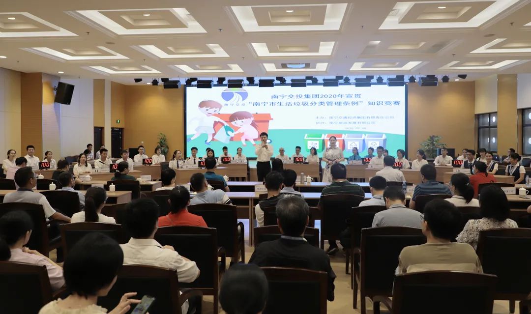 為貫徹落實習近平總書記對垃圾分類工作作出的重要指示精神,倡導(dǎo)廣大干部員工共同參與垃圾分類,樹立綠色的環(huán)保意識,9月8日,集團公司在四樓多功能報告廳舉行“垃圾分類我先行·創(chuàng)建文明齊參與”專題知識競賽。集團公司領(lǐng)導(dǎo)農(nóng)明姬、張玉波、黃海燕,南寧市國資委綜合科科長謝雄勝以及市屬八大集團相關(guān)人員出席比賽。 本次比賽各子公司共組成11支隊伍參加,比賽設(shè)置必答題、搶答題、互動答題和加賽題四個環(huán)節(jié),題目涵蓋了《南寧市生...